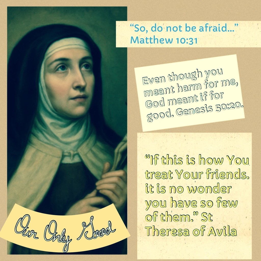 It is definitely time for me to listen to St Theresa of Avila and Mother Angelica and to make more time to talk to God and always to give Him thanks and sometimes say as Saint Theresa did, “…it’s no wonder You have so few of them…” but to continue trusting, loving and surrendering to Him. Fiat
